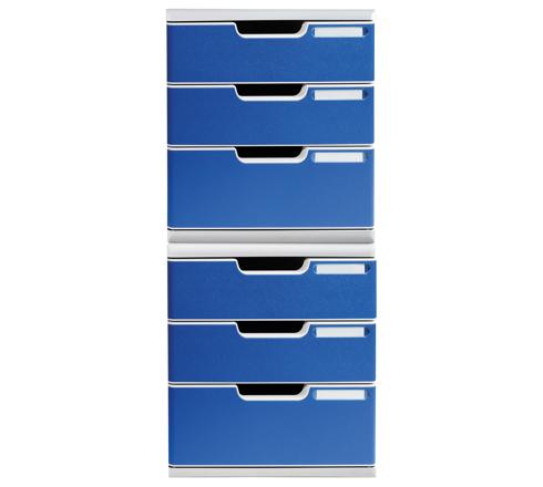 MÓDULO A4, CAJONES CERRADOS + 3 ALTURAS + STOP DE SEGURIDAD, TAMAÑO: 1X110MM + 2X82 MM OFFICE - AZUL