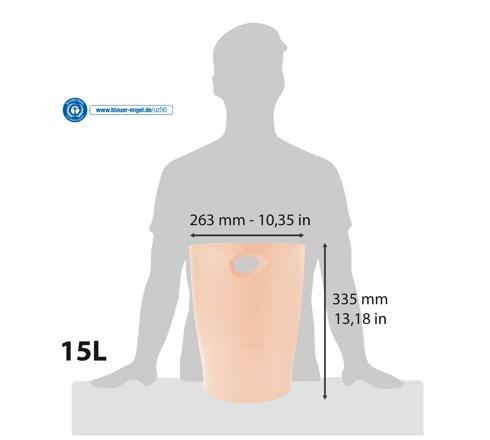 La papelera ECOBIN, cuenta con una capacidad de 15 litros. Sus asas están integradas para facilitar su transporte y vaciado, interior es fácil de limpiar.