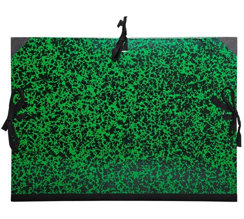 Diseño exterior: patrón de mármol verde jaspeado negro Annonay y cuenta en el interior con un protector gris nublado a juego para una conservación optima. Cierre con 3 cintas de tela para una excelente retención de documentos durante el archivo o transporte.