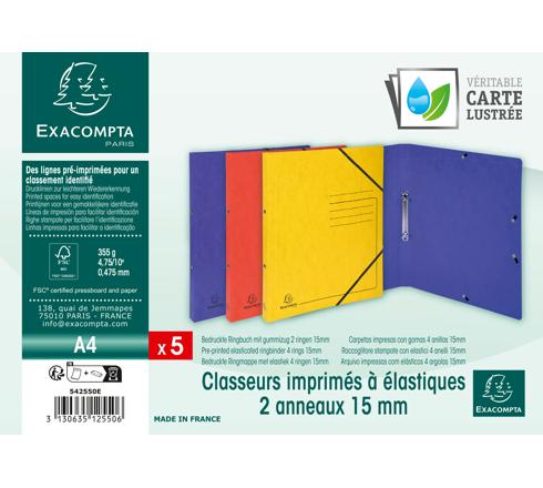 CARPETAS CARTULINA LUSTRADA IMPRESA CON GOMAS PARA ARCHIVAR A4 - 2 ANILLAS EN O 15 MM - COLORES SURTIDOS
