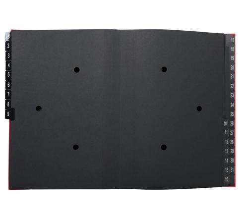 Pestañas impresas del 1 al 31 y laminadas para mayor resistencia.