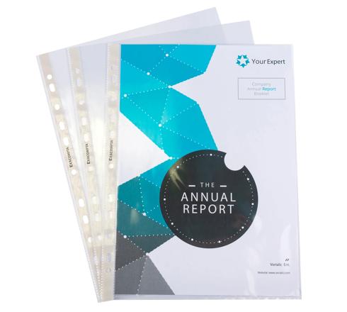 Fundas con taladros para un archivado organizado, modelo calidad superior liso. La bolsa contiene 100 fundas.