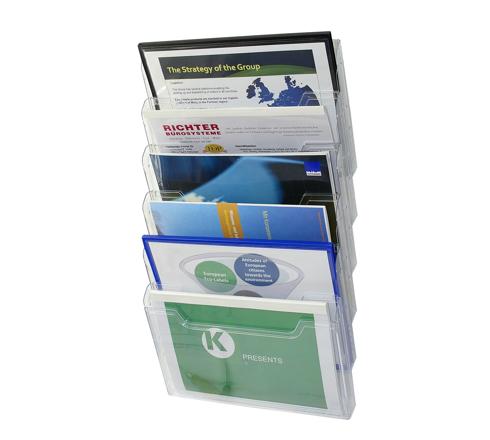 Soporte clasificador de folletos en la pared le permitirá almacenar o mostrar todos sus documentos, revistas, folletos,...de una manera autoservicio y visualmente organizada y atractiva a la vista. COLOR: Multicolor translucido