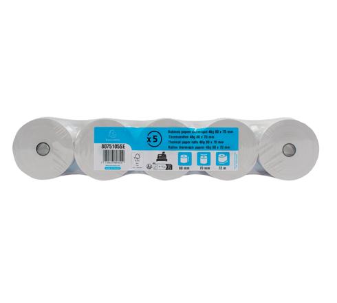 Formato de la bobina: 80 mm de ancho y 70 mm de diámetro. Longitud (+ o - 2m): 72 m. Mandril estándar de 12 mm. Apto para cualquier marca de caja térmica.