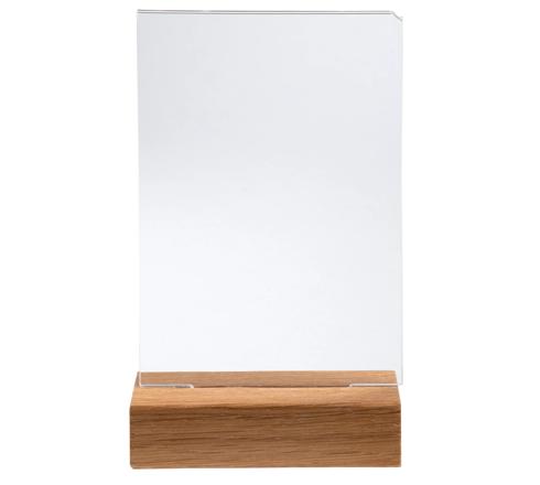 SOPORTE PARA FOLLETOS CON BASE DE MADERA - A6 - 105X50X180 MM - CRISTAL