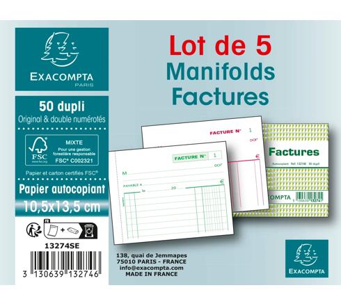 MANIFOLDS FACTURES 10,5X13,5CM - 50 FEUILLETS DUPLI - SOUS FILM PAR LOT DE 5