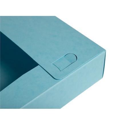 Livrée à plat comme une chemise à élastiques, la boite Cartobox, innovation d'exacompta, se monte très facilement avec ses petites pattes de pliage et présente alors les mêmes qualités qu'une boite livrée montée.