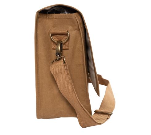 La matière extérieure est appelée simili cuir végétal ou washable paper. Il s'agit d'un papier enduit de latex, extrêmement résistant issu de matériaux végétaux, certifié FSC®. Pour une fabrication entièrement végétale, l'intérieur est doublé de coton organique.