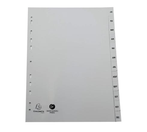 INTERCALAIRES IMPRIMÉS MENSUELS PP RECYCLÉ GRIS JANVIER-DÉCEMBRE - 12 POSITIONS - A4 - GRIS