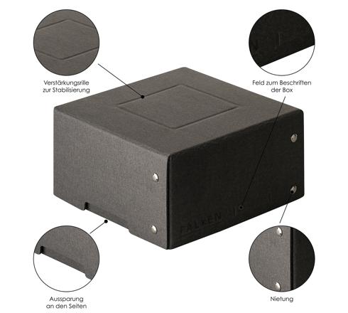 Ses poignées pratiques, ses champs d'inscription et rainures de renfort sur le couvercle sont gages de sa qualité de conception.