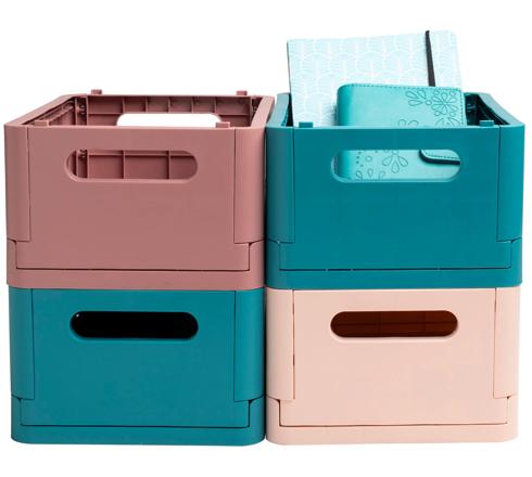 Respectueuse de l'environnement, cette boîte pliable est fabriquée en plastique recyclé issu des déchets ménagers et est ainsi certifiée GRS.