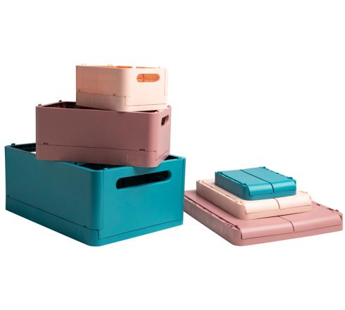 Respectueuse de l'environnement, cette boîte pliable est fabriquée en plastique recyclé issu des déchets ménagers et est ainsi certifiée GRS.