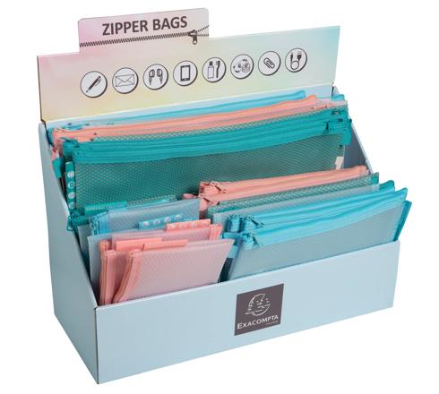 PRÉSENTOIR DE 36 POCHETTES ZIP A4-A5-A6 CHROMALINE PASTEL - COULEURS ASSORTIES