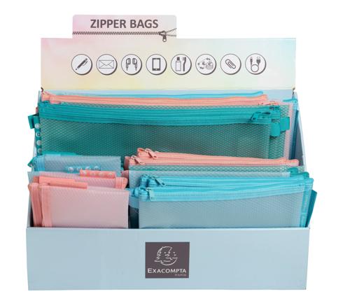 PRÉSENTOIR DE 36 POCHETTES ZIP A4-A5-A6 CHROMALINE PASTEL - COULEURS ASSORTIES