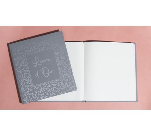 Le livre d'or format 21x19cm contient 140 pages tranche argent. Ce produit est designé et fabriqué à 100% dans notre site situé à Paris.