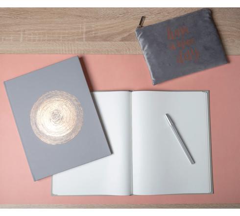 Le marquage centrique rappelant l'infinité marqué en or rosé sur la couverture simili-cuir du livre d'or Ellipse en fait un élément de design incontournable qui recevra les mots les plus profonds dont vous voudrez vous remémorer les moindres détails.