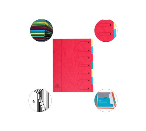 TRIEUR EXTENSIBLE HARMONIKA SANS ÉLASTIQUE FENÊTRES IMPRIMÉES 7 COMPARTIMENTS - A4 - ROUGE