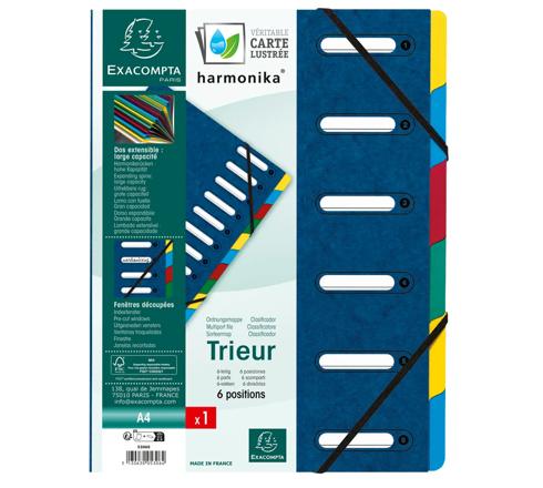 TRIEUR HARMONIKA® À FENÊTRES AVEC ÉLASTIQUES VÉRITABLE CARTE LUSTRÉE 6 COMPARTIMENTS - COULEURS ASSORTIES