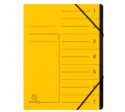 TRIEUR AGRAFÉ AVEC ÉLASTIQUES INTÉRIEUR NOIR 7 COMPARTIMENTS - A4 - JAUNE