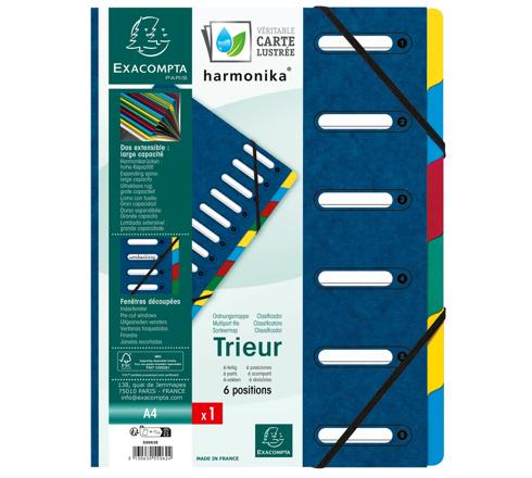TRIEUR HARMONIKA® À FENÊTRES AVEC ÉLASTIQUES VÉRITABLE CARTE LUSTRÉE 6 COMPARTIMENTS - BLEU