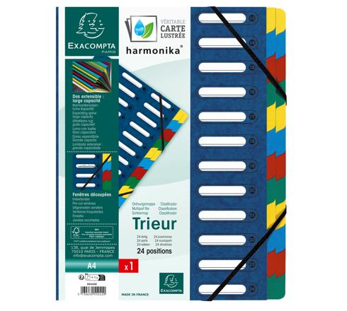 TRIEUR HARMONIKA® À FENÊTRES AVEC ÉLASTIQUES VÉRITABLE CARTE LUSTRÉE 24 COMPARTIMENTS - BLEU