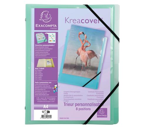 Personnalisation du trieur facilitée grâce à la pochette Kreacover et des 8 compartiments grâce aux fenêtres découpées dans la couverture.