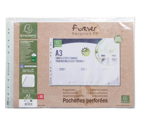 SACHET DE 10 POCHETTES PERFORÉES PP RECYCLÉ FOREVER 9/100E - A3 - TRANSLUCIDE