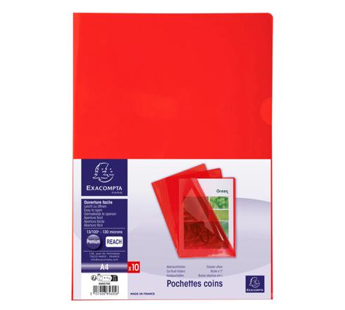 SACHET DE 10 POCHETTES COIN PVC LISSE HAUTE RÉSISTANCE 13/100E - A4 - ROUGE