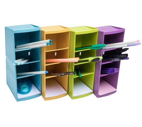 Ses 4 compartiments de profondeurs différentes de 8 à 11 cm, vous permettent de l'utiliser comme pot à crayons, y ranger vos stabilos, ciseaux, post its, téléphone ou divers petits accessoires. Utilisable debout comme couché et juxtaposable, vous pourrez clipser plusieurs produits entre eux grâce aux clips fournis. Cela vous permettra d'optimiser votre organisation et augmenter votre capacité de rangement.
