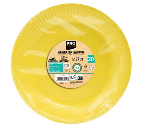 20 ASSIETTES EN CARTON RONDES, 23 CM - JAUNE
