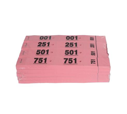 CARNET DE 50 TICKETS VESTIAIRES NUMÉROTÉS DE 3 VOLETS (DONT 2 VOLETS AVEC TROUS) - FORMAT 20X3 CM - ROSE