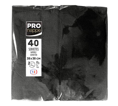 PAQUET DE 40 SERVIETTES MICRO GAUFRÉES OUATE 2 PLIS - PLIÉES 1/8 - NOIR - NOUVEAUTÉ