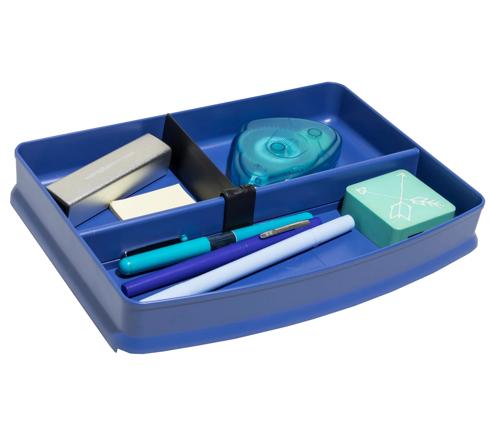 Ses séparateurs intégrés et complètement modulables permettent de ranger au dessus de ses papiers, tous les petits ustensiles de bureau que vous souhaite. En enlevant les séparateurs, vous pouvez également y ranger de petits documents format A5+