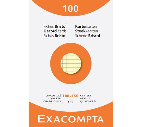 ÉTUI DE 100 FICHES - BRISTOL QUADRILLÉ 5X5 NON PERFORÉ 100X150MM - COULEURS ASSORTIES