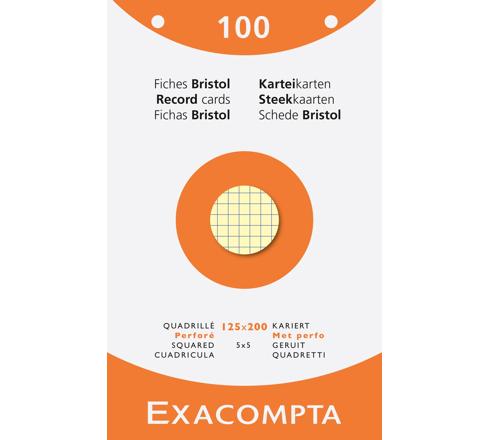 ÉTUI DE 100 FICHES - BRISTOL QUADRILLÉ 5X5 PERFORÉ 125X200MM - COULEURS ASSORTIES