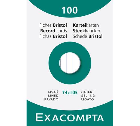 ÉTUI DE 100 FICHES - BRISTOL LIGNÉ NON PERFORÉ 74X105MM - BLANC