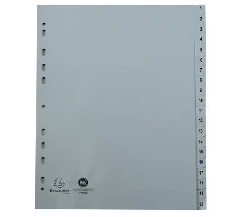 INTERCALAIRES IMPRIMÉS NUMÉRIQUES PP GRIS RECYCLÉ 20 POSITIONS - A4 - GRIS
