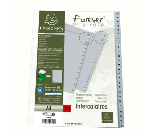 INTERCALAIRES IMPRIMÉS ALPHABÉTIQUES PP RECYCLÉ - AZ 26 POSITIONS - A4 - GRIS