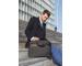 Un passant au dos permet de glisser la sacoche le long d'une poignée télescopique de valise.