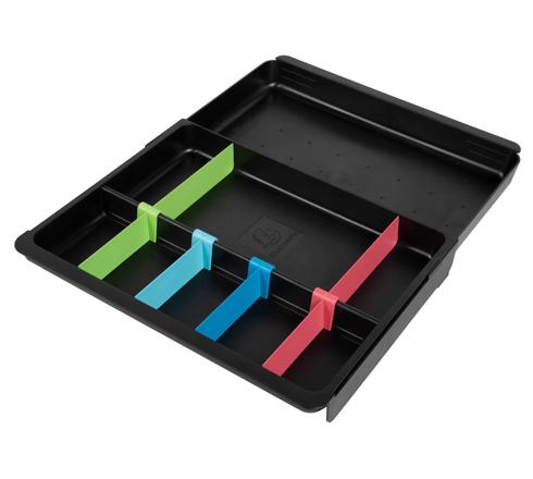 En plus de pouvoir s'insérer facilement au sein des Big Box et Big Box Plus, il est compatible avec la plupart des tiroirs grâce à sa partie coulissante et adaptable en largeur.
