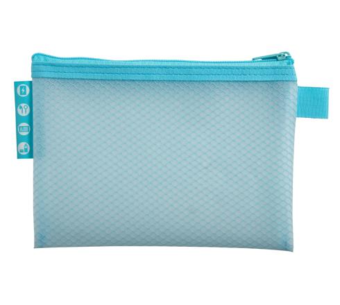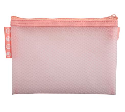 En version pastel, la pochette peut contenir tout type de fournitures, papiers, accessoires, stylos, produits de beauté, ?qui seront soigneusement protégés et visibles grâce à la transparence.