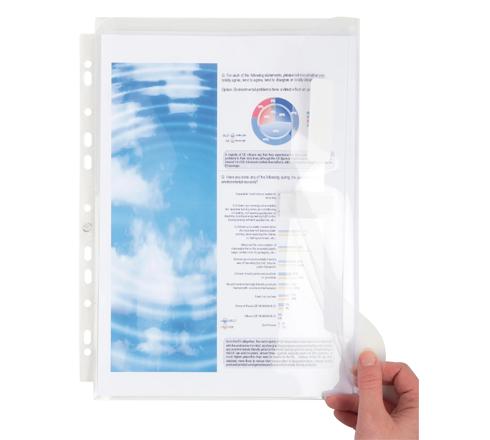 PERFORATION : Européenne de 11 trous - Bande de renfort blanche - Grâce aux perforations sur le côté gauche, vous avez la possibilité de ranger les pochettes dans un classeur - Ouverture par le haut pour l'insertion des documents