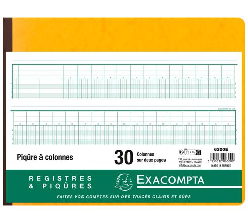 La piqûre à colonnes est un support souple et pratique pour consigner tout ce qui s'enregistre, se compte, se classe. Les tracés pré-imprimés simplifient les reports sur les 31 lignes par page. Chaque double-page est numérotée pour retrouver plus facilement les données et éviter les falsifications. Sur 80 pages, le cahier reste léger, facile à transporter, mais à la fois très complet pour tout enregistrer sur plusieurs mois, voire plusieurs années. Choisissez votre piqûre en fonction du nombre de relevés que vous devez faire par ligne, et donc du nombre de colonnes nécessaires.