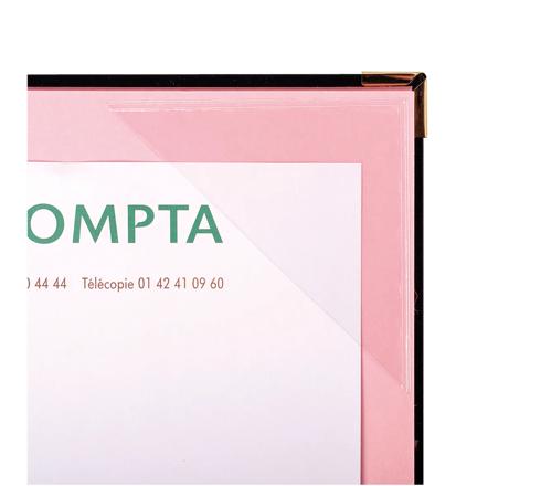 Intérieur en buvard rose 360g/m2, perforation en 2 points des compartiments afin de déceler la présence de documents. Le système FIX APAGE assure le maintien des courriers dans l'aide de trombones. Encoches renforcées dans la partie inférieure des compartiments.