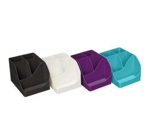 Grâce à ses 5 compartiments de hauteurs différentes vous pourrez ranger tous vos ustensiles les plus usuels. Il offre 4 compartiments hauts pour les grands ustensiles : ciseaux, stylos et 1 compartiment bas pour les petits objets tels que les trombones, les punaises, clé USB ou même son téléphone portable.