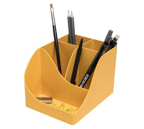 Grâce à ses 5 compartiments de hauteurs différentes, il offre une grande capacité de rangement : 4 compartiments hauts pour les grands ustensiles , ciseaux, stylos et 1 compartiment bas pour les petits objets tels que les trombones, les punaises, clé USB ou même pur poser son téléphone portable.