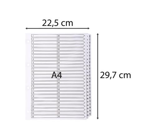 INTERCALAIRES IMPRIMÉS À TOUCHES PLASTIFIÉES - 50 TOUCHES 1 À 50 - A4 - BLANC