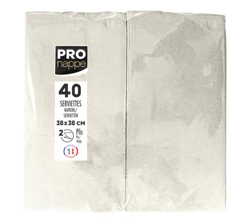 PAQUET DE 40 SERVIETTES MICRO GAUFRÉES OUATE 2 PLIS - PLIÉES 1/8 - IVOIRE - NOUVEAUTÉ