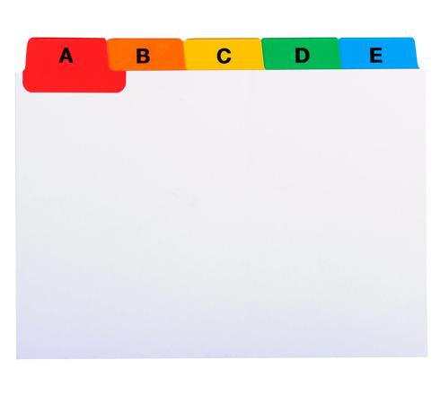 INTERCALARI PER SCHEDARIO, 25 SCOMPARTI ALFABETICI A-Z CARTONCINO 160 G/MQ - A7 IN ORIZZONTALE - BIANCO