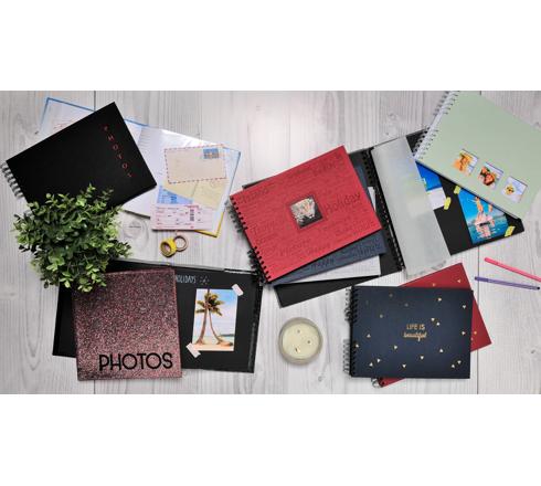 ALBUM PHOTOS À SPIRALES 50 PAGES NOIRES - FORMAT 32X22CM - LIFE ROUGE - BLEU